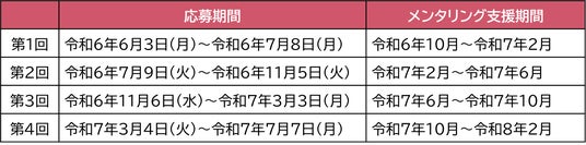 IPASは、令和6年6月3日(月)から通年応募を受け付けますが、応募する時期により支援期間が異なります。下記に応募期間および支援期間を記載しておりますので、奮ってご応募ください。