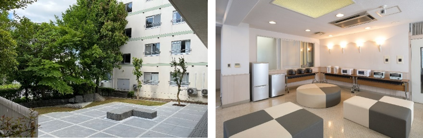 ■実習生の交流を深めるBBQテラス、ラウンジ