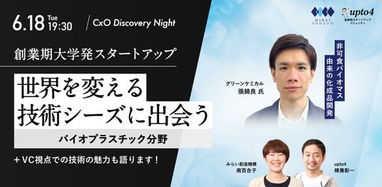 イベント名:【バイオプラスチック】創業期大学発スタートアップ-世界を変える技術シーズに出会う+VC視点での技術の魅力も語りますvol.8 -みらい創造機構 x upto4
