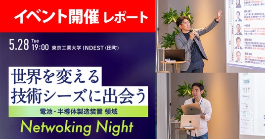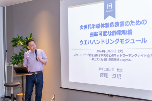 株式会社みらい創造機構(代表取締役社長:岡田祐之、以下「みらい創造機構」)は、upto4株式会社(代表取締役:棟兼彰一、以下「upto4」)との共催により、【世界を変える技術シーズに出会う】電池・半導体製造装置領域でスタートアップ化を目指す研究者とのネットワーキングイベントを2024年5月28日 東京工業大学キャンパス・イノベーションセンターINDEST(Innovation Design Studio)で開催しました。本イベントは、みらい創造機構とupto4との共催する「CxO Discovery Night」の特別企画として、CxO人材の招待者約40名が参加しました。