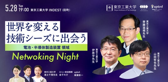 イベント名:リアル開催【世界を変える技術シーズに出会う】電池・半導体製造装置領域でスタートアップ化を目指す研究者とのネットワーキングナイト -東工大×みらい創造機構×upto4