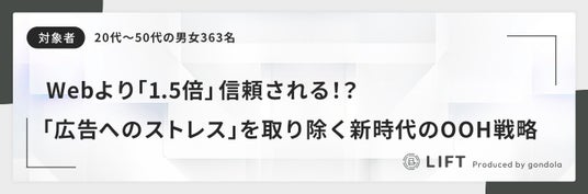 株式会社ゴンドラ(東京都千代田区、代表取締役社長 古江恵治)は、20代~50代の男女363名を対象に「屋外広告に対する印象と行動への影響」に関するアンケート調査を実施し、調査結果を当社マーケティングメディア「LIFT」にて公開しましたので、お知らせいたします。