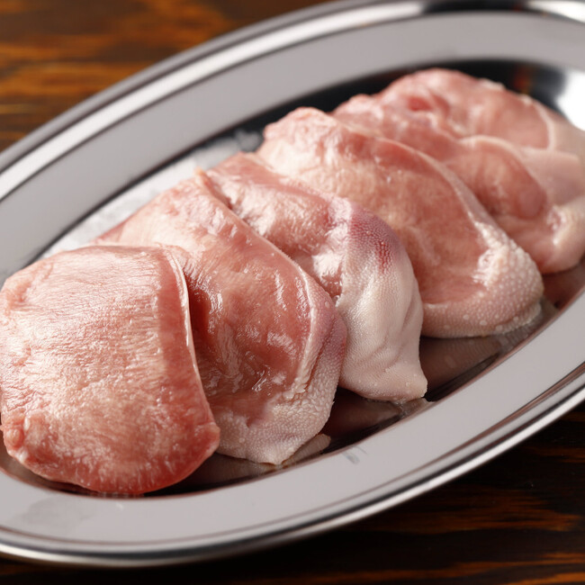 牛タン、豚タンに比べて大変きめ細かく、あっさりと上品な味わいとジューシーさが特徴です。