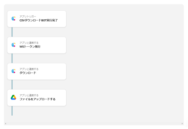 クラウドBOTがWebサイトからダウンロードしたCSVファイルをGoogleDriveにアップロード。
