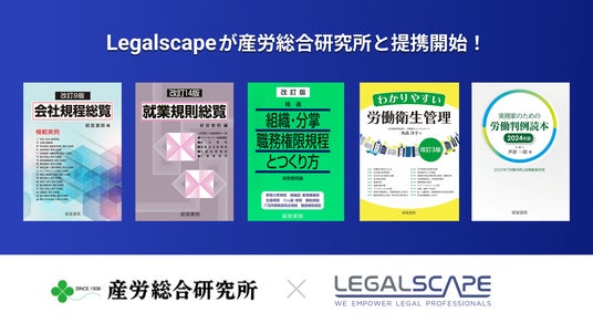 株式会社Legalscape(本社:東京都文京区、代表取締役社長・最高経営責任者:八木田 樹、以下リーガルスケープ)は、株式会社産労総合研究所(本社:東京都千代田区、代表取締役社長:平 盛之)と新たに提携し、書籍の掲載を開始したことをお知らせします。