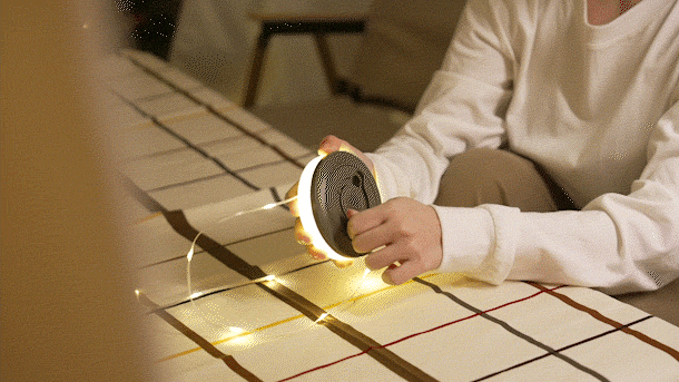 キャンプライトとストリップライト機能が一体化したランタン。手軽に持ち運べ、どんな場所でも、柔らかなライトの光が空間をロマンチックに演出し、特別なひと時を照らし出します。