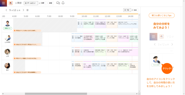 勤務間インターバルを個別に実態把握することは難しい企業には、勤怠システム等で可視化をすることが可能です。当社開発の朝メールドットコム(R)でも勤務間インターバルの可視化を可能にしている他、本質的な働き方改革の支援など、賛同企業各社でのインターバルの実現をサポートしてまいります。