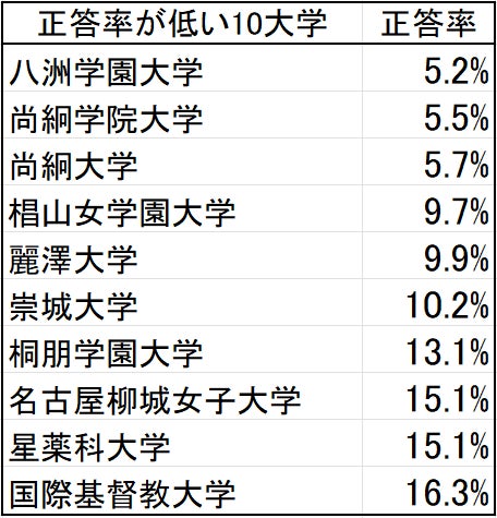 表4 正答率(下位10大学・地名除く)