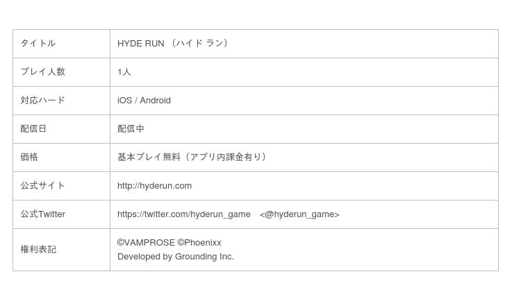 株式会社Phoenixx(フィーニックス)(東京都千代田区、代表取締役社長:坂本 和則)は、現在配信中のHYDEのソロ活動20周年を記念したスマートフォン向けゲーム『HYDE RUN』にて、ハロウィンにあわせた大規模アップデート版の配信を本日開始したことをお知らせいたします。