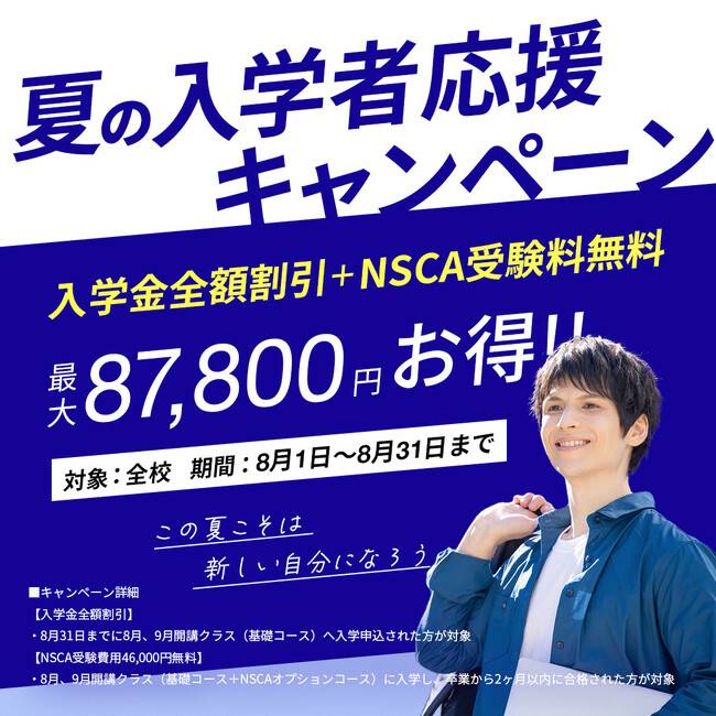 プロジムでは、高額な受験料だからと、資格取得を諦めてほしいくないという思いから、国際資格NSCA受験費用46,000円を全額負担(*2)します。