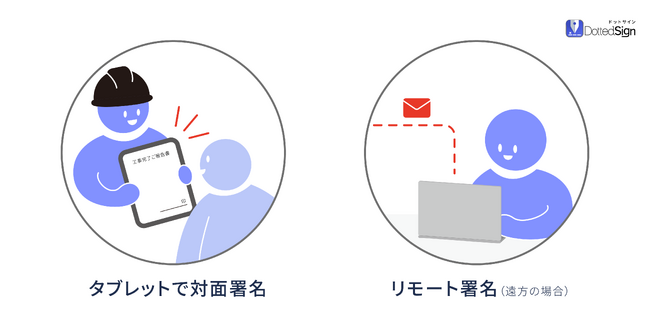住宅リフォーム会社では、紙を使わずに作業を効率化するため、対面署名とリモート署名の機能が必要です。そのため、DottedSignを導入し、リフォーム請負契約書、変更同意書、工事完了書などについて、タブレットを使用して対面で署名を行っています。また、遠方にいるお客様もいるため、遠方の場合はリモート署名で契約を締結する予定です。