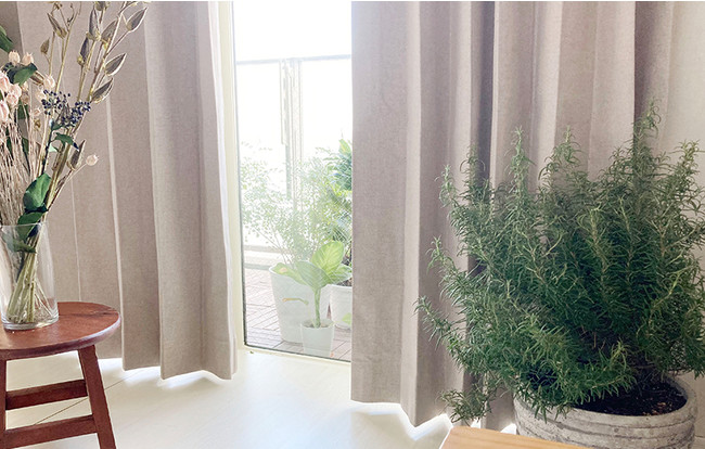 コットンリネンの薄い繊細な生地なので、陽ざしを気持ちよく取り込みます。
