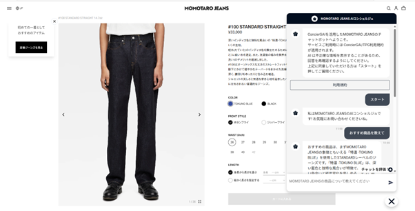 株式会社ジャパンブルー(本社:岡山県倉敷市、代表取締役会長兼CEO 山田 政弘、以下ジャパンブルー)が手掛ける岡山・児島発のジーンズブランド「MOMOTARO JEANS」のブランドサイトにおいて、来店前からブランドの魅力を伝えるAIコンシェルジュを構築しました。MOMOTARO JEANSは、製造工程を紹介する動画の拡散をきっかけに海外からの来店客が急増し、商品説明や試着対応に時間を要するなど接客体制に課題を抱えていました。今回導入された生成AIプラットフォーム「Kotozna TPG」を活用した多言語対応のAIコンシェルジュは、QRコードからアクセスでき、ブランドストーリーやスタイル・サイズ情報を案内することで、来店時の接客品質向上と円滑な店舗運営を支援します。さらに、ECサイト上でもスタッフに接客してもらうような疑似体験を提供し、ブランドの世界観やフィロソフィーが伝わる言葉遣いで、商品選びをサポートします。これにより、オンライン・オフラインの両方で統一感のある顧客体験を実現します。