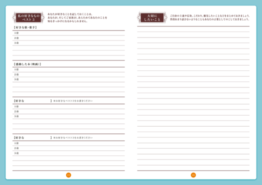 2.ライフメモリアルノート:エンディングノートと比較して、より想いをダイレクトに伝えるためのノート。人生 の振り返りやこれからの目標などを記入するパートもあり、じっくり考え、ご自身が大切にしている想いを伝えたい方におすすめです。