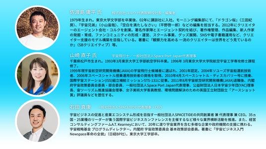13:20-13:50 特別トークセッション「キャリアの選択肢に“宇宙”がある時代へ~ 夢、現実、そして次の一歩 ~(予定)」(佐渡島庸平氏、山崎直子氏、弊社石田)