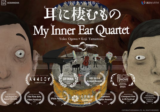 世界中の映画祭で称賛を浴びてきたアニメーション作家・山村浩二の作品群が集結する特別上映会「山村浩二大全 アはアニメーションのア」がテアトル新宿で12月5日(金)から2週間開催されます。デビューから40年にわたり制作された63作品が、一挙公開されるなかで特に注目されるのが、小説家・小川洋子氏とのコラボレーションによるVR映画『耳に棲むもの』(製作:講談社、企画・制作:講談社VRラボ)の上映です。