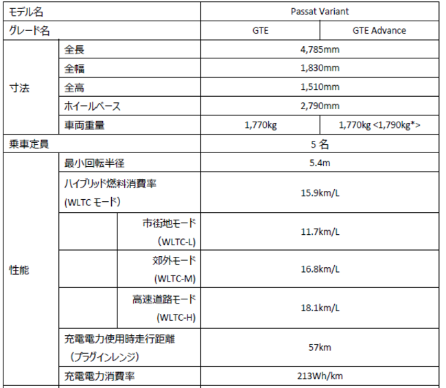 新型「Passat GTE Variant」の主なポイントは、次の通りです。