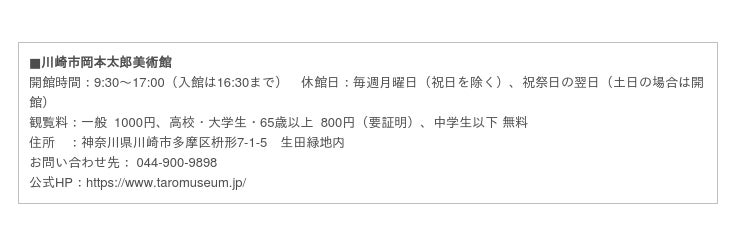 ※イベントの詳細は「川崎市岡本太郎美術館」公式HPをご確認ください。