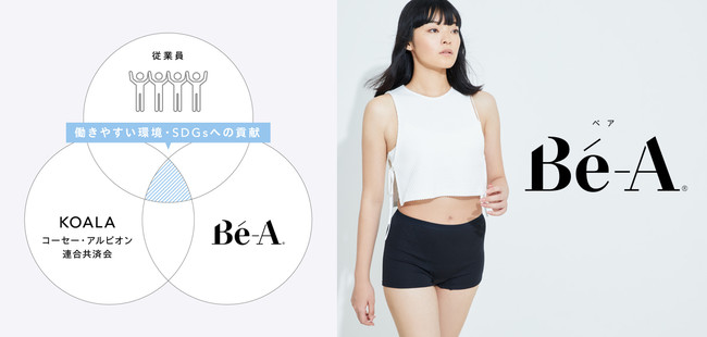 そして、本プログラム導入の第一号として、コーセー・アルビオン連合共済会「KOALA」での取り扱いを開始し、コーセー・アルビオングループの共済会会員に対する福利厚生制度の一環として「Be-A〈ベア〉」ショーツの優待販売を行います。