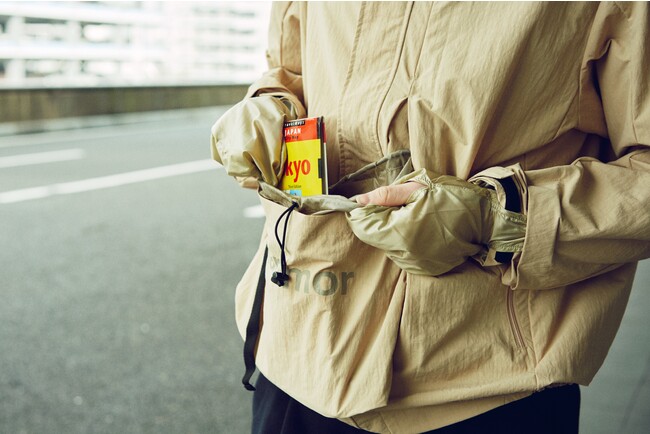 今回発表する新アイテムは、フロントに収納式バッグ、袖口には収納式簡易ミトンを搭載した、シーン毎にトランスフォーム可能なはっ水・防風ジャケット「urban utility storage bag jkt(アーバン ユーティリティ ストレージ バッグ ジャケット)」、保温性に優れた起毛ポリエステル素材や、裾口のアジャスターコードとリフレクター仕様が、アーバンシーンに留まらず自転車に乗るシーンでも活躍するパンツ「brushed woven pants (ブラッシュド ウーヴン パンツ)」、ちょっとしたお出かけに最適な小ぶりなサイズ感で、ワンショルダーと斜めがけの2WAYで使えるショルダーバッグ「bucket shoulder(バケット ショルダー)」のトラベルシーンに最適な3アイテム。