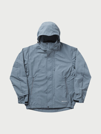 収納式バッグを搭載した防風ジャケット。表地は回収された海洋廃棄物の一種であるブイを原料とし、中綿・裏地にはペットボトルからリサイクルされた繊維を採用。内蔵したバッグは、身頃内への格納、身頃外側への装着と二通りの仕様が可能。収納式フード、袖口に配置した収納式ミトンなど、天候の変化にも対応可能な一着。ポケット部分には抗菌加工素材を採用。