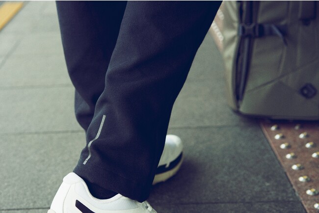 保温性に優れた起毛ポリエステル素材を採用したデザインパンツ。大容量ポケット内部には抗菌加工素材のインナーポケットを配置。ワイド目なシルエットでありながら、裾にアジャスター、反射プリントを搭載することにより、アーバンシーンのみならず、自転車などのアクティブシーンでも活躍する一着。