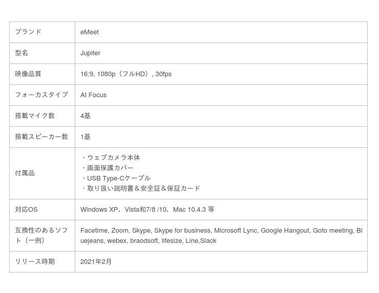 『AI Webcam Jupiter』は、eMeet社が2021年2月に発売した、AI搭載のハイエンドウェブカメラです。