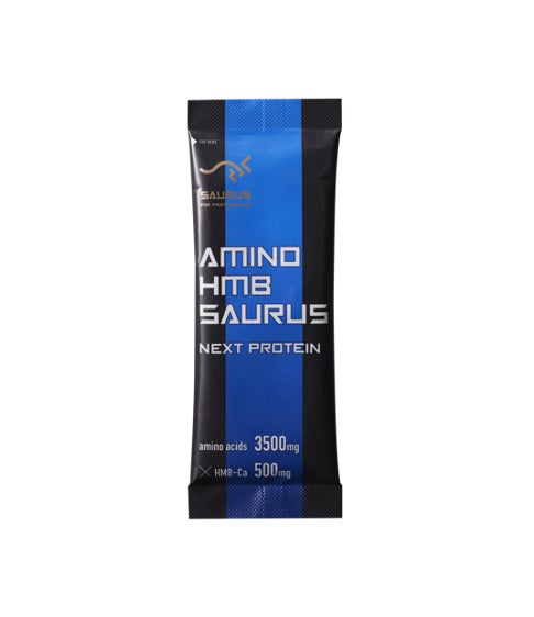 アミノエイチエムビーサウルスAMINO HMB SAURUS(アミノエイチエムビーサウルス)筋肉の構成成分を補給し、コンディションを維持する重要な栄養素であるBCAAを1包あたり2,500mg含有。