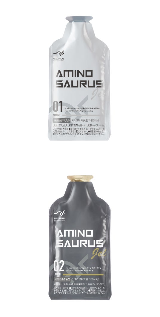 (上)アミノサウルスジェル01/マンゴー風味(下)アミノサウルスジェル02/レモン風味【機能性表示食品】アミノサウルスジェル01マンゴー風味/アミノサウルスジェル02レモン風味日常の生活や運動後の疲労感を軽減する働きがあることが報告されている 「クエン酸 ( 機能性関与成分 )」2700mg/ 個を配合した機能性表示食品。