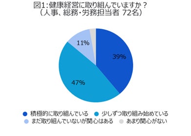 健康経営への注目度は高まっているものの、本セミナー参加者のように健康経営に関心の高い層であっても、「積極的に取り組んでいる」と回答した割合は4割程度にとどまる結果となりました。