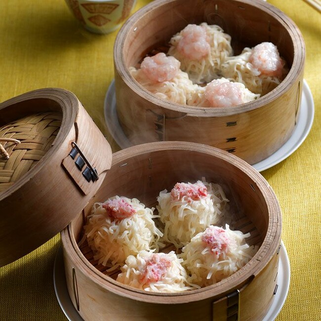 とろり濃厚な餡と口中に広がる海鮮の旨みに舌も心もとろける。そんな焼売だ。スケトウダラの身をベースに、鳥取県境港で獲れた紅ズワイガニと甘エビを、それぞれ贅沢に使って滋味を閉じ込めた2種2様の旨さ。特製たれの酸味も、カニの風味、エビの甘みを引き立て相性抜群。