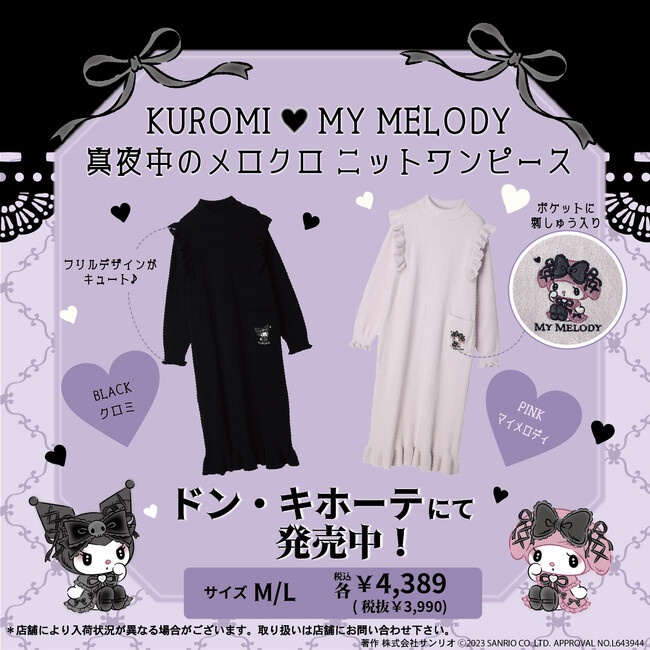 フリルデザインがキュートな「真夜中のメロクロ」のニット上下セットとニットワンピースが全国のドン・キホーテ(一部店舗除く)にて絶賛発売中です。