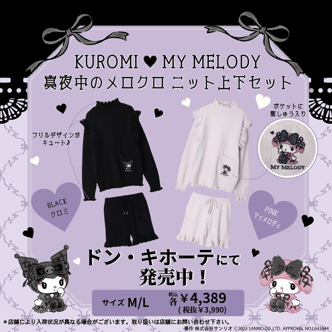 サンリオキャラクターズ 真夜中のメロクロ ニット上下セット 4,389円(税込)