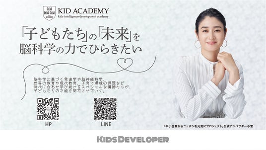 全国で【KID ACADEMY】を展開する株式会社Kids Developer(本社:神戸市東灘区、代表取締役:相馬れいこ)は、昨秋より「中小企業からニッポンを元気にプロジェクト」へ参画し、同プロジェクトの公式アンバサダーである女優・小雪さんの肖像を用いたプロモーション活動を行ってまいります。