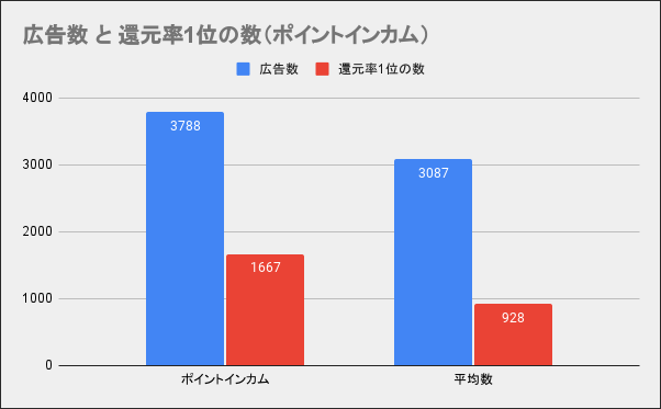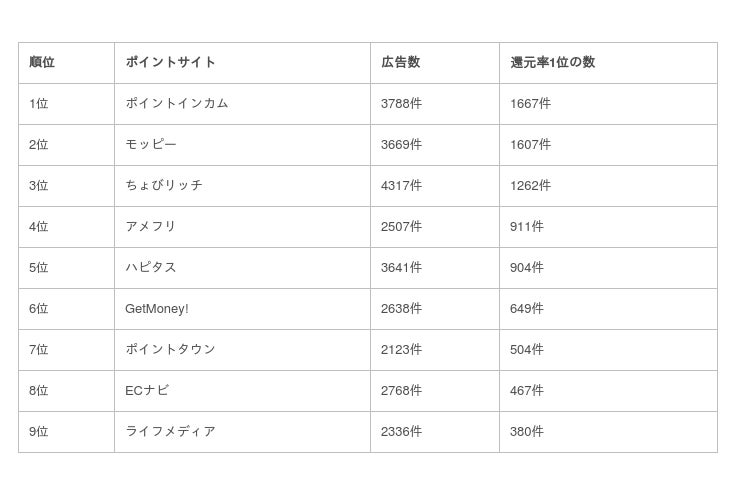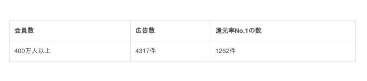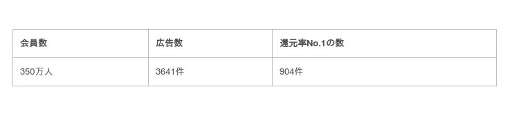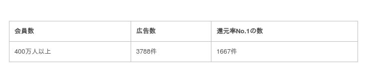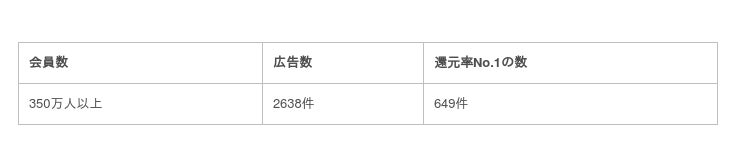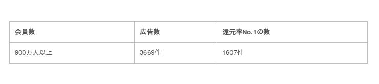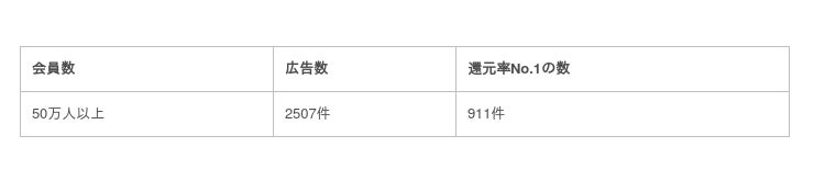 ランキングは「一番還元率の高い広告案件の数」に絞って順位付けをしているので、客観的な調査結果となっています。