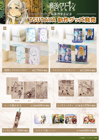 株式会社SMIRAL(本社:東京都品川区 代表取締役社長:菊田 昌史)は2022年3月17日(木)より全国のTSUTAYAにて「週刊少年サンデー」(小学館)で連載中、ファンタジー漫画『葬送のフリーレン』(原作:山田鐘人 作画:アベツカサ)のコミックス最新7巻発売を記念した新作グッズの発売を実施いたします。