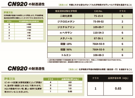 ※1:化学物質の透過及び、または透過の防止を目的として使用する手袋について規定している規格。