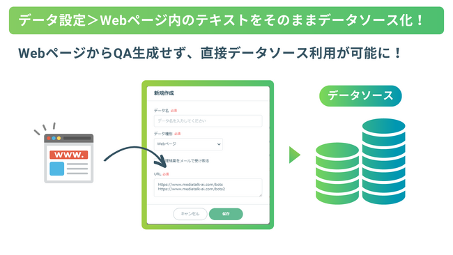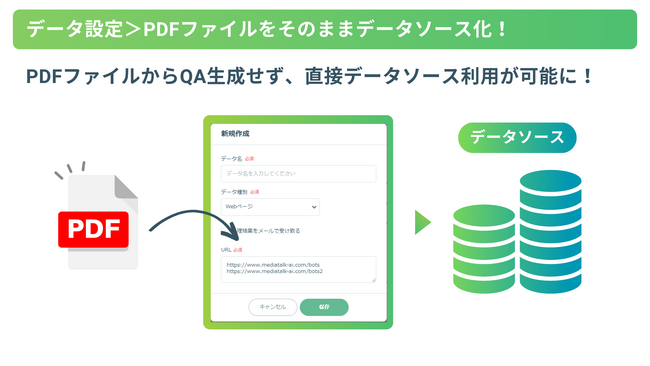 ChatGPT連携チャットボット「MediaTalkGAI」や、代表電話を自動化する「DXでんわ」などを提供するメディアリンク株式会社(本社:東京都港区、代表取締役:松本 淳志、以下 メディアリンク)は、Webページ・PDFファイルをそのままデータソースとして利用できる機能など複数の新機能をリリースしたことをお知らせします。