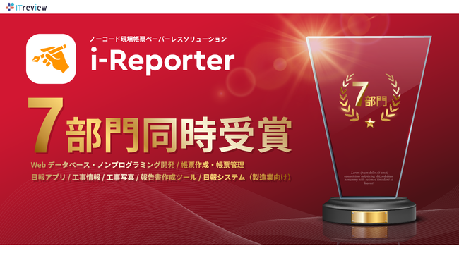 株式会社シムトップス(本社:東京都品川区、代表取締役社長:水野貴司、以下:シムトップス)は、国内最大級のIT製品・SaaSレビューサイト「ITreview」(運営会社:アイティクラウド株式会社、本社:東京都港区、代表取締役社長:黒野源太)のアワードである「ITreview Grid Award 2022 Fall」において、当社が提供する「現場帳票」ペーパーレス ソリューションi-Reporter(以下i-Reporter)が7部門において、満足度・認知度ともに優れた製品であると評価され「Leader」に選ばれたことをお知らせいたします。