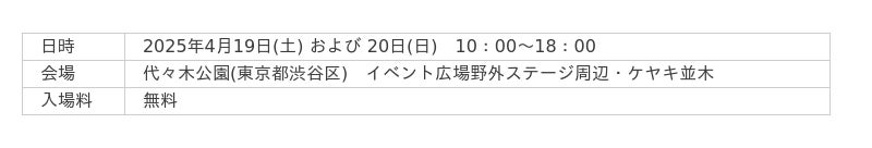 日時:2025年4月19日(土) および 20日(日) 10:00~18:00