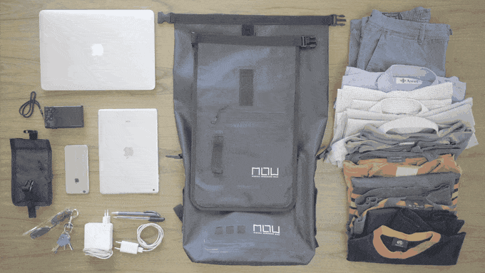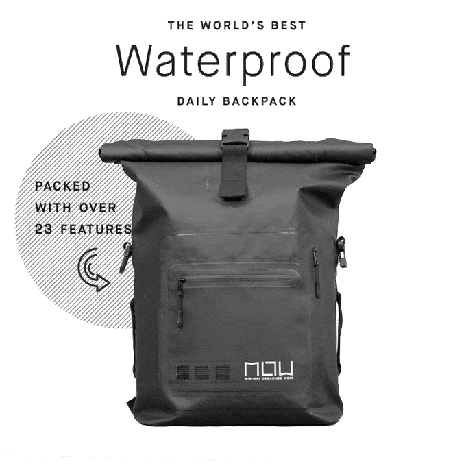 水に水没させても荒れ狂う滝に打たれても、内部へ一切の水の浸入を許さない防水機能をはじめ、23個もの機能を詰め込んだバックパック「MOW」。