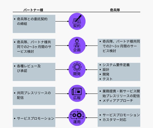 契約締結後のパートナー企業と奇兵隊の役割分担は以下の通りです。