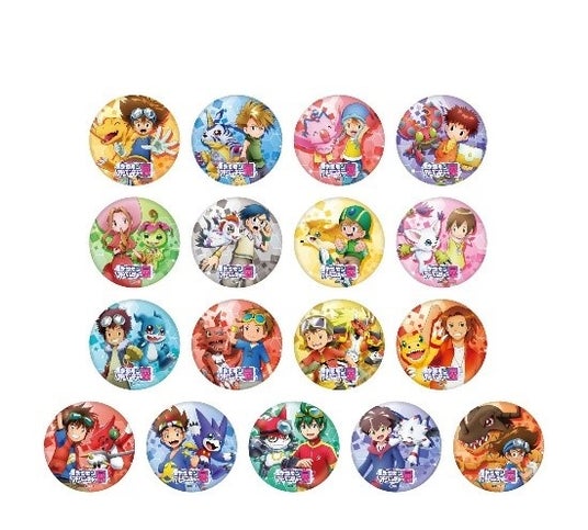 全シリーズの主人公とパートナーデジモンが描かれた缶バッジ・アクスタ・アクキー、