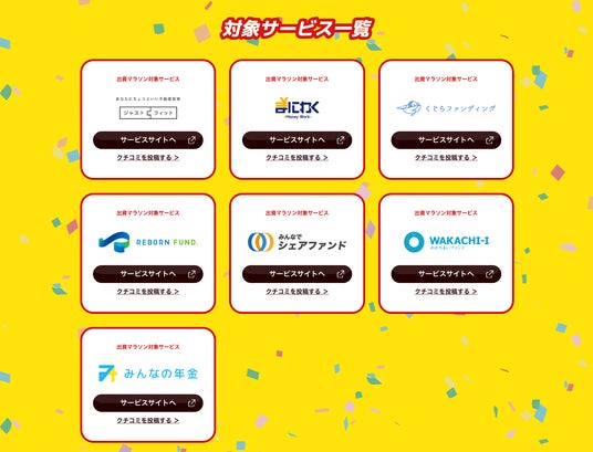 対象サービス(サイト)は、2024年10月1日時点でファインディングファンドと提携しているサービスです。今後対象サービスが増えた場合は、そちらも対象となります。