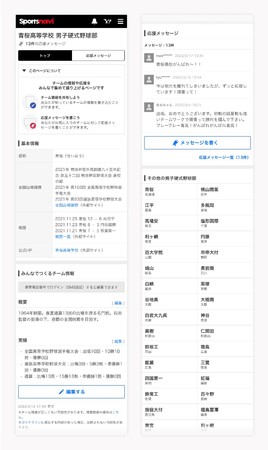 本サービスのβ版として、3月18日から阪神甲子園球場で開催される第94回選抜高等学校野球大会に出場する32校のページを掲載します。今後、夏の全国高等学校野球選手権大会の地方大会に合わせて日本全国の硬式野球部のページ公開を予定している他、さらに対応する競技やスポーツカテゴリを拡大する予定です。