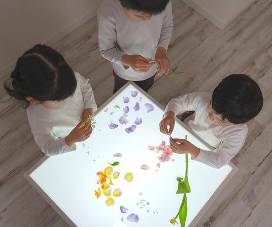 ジャクエツが開発したHIKARI to Tableは、キッズデザイン賞において「子どもたちの創造性と未来を拓くデザイン」部門を受賞しました。HIKARI to Tableは、調光式のライトテーブルです。いつもと違う光を用いてテーブルの上で造形活動や観察体験を行うことで、子どもたちは自然と集中することができ、近年注目されている、これから社会を生き抜くために必要な「非認知能力」をより効果的に育むことができます。充電式なので使用場所を選ばず、テーブル形状にすることで複数人で楽しめる、光のあそび環境を目指しました。