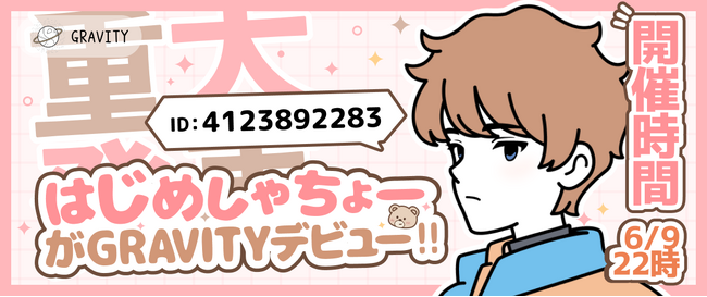 GRAVITYを盛り上げている、声とチャットで交流できる「音声ルーム」に、公式YouTubeチャンネル登録者数1,000万人超えの人気動画クリエイターはじめしゃちょーが登場します。近況や新たなゲーム企画のお話など音声ルームでどのようなトークが繰り広げられるのか!?トークを見逃さないよう、事前にSNSアプリ「GRAVITY」をダウンロードして当日音声ルームでのリアル生配信をお楽しみください。