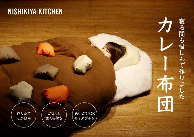 レトルト食品メーカー株式会社にしき食品(本社:宮城県岩沼市、代表取締役:菊池 洋)の自社ブランド・NISHIKIYA KITCHEN(ニシキヤキッチン)から、寝る間も惜しんでつくった「カレー布団」が新登場いたします。なお、本リリースは、エイプリルフールの架空のお知らせとなります。