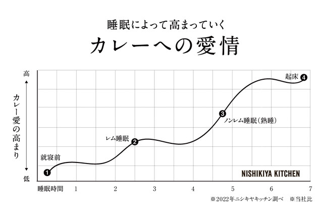 2022年ニシキヤキッチン調べでは、カレー布団で寝れば寝るほど、カレーへの愛情が高まることがわかっています。※当社比