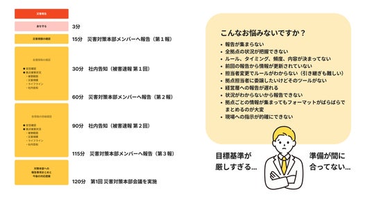 - 社内報告は行われているが、よく見るとその内容は数時間前のもので、それをもとに事業継続上の有効な意思決定が難しかった